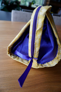 Mother couldn't borrow the bag I made her daughter some time ago and asked me to sew her the same pattern, but a little bit bigger one. I had this same fabric still some pieces, so I made it from that.